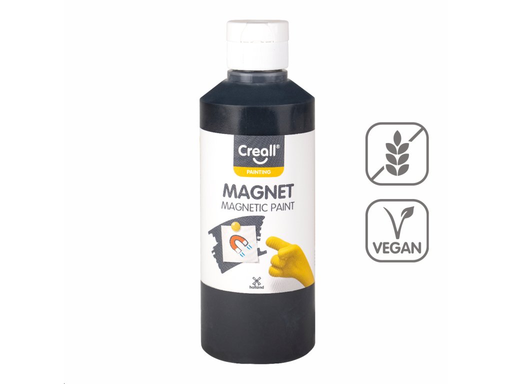 Akrylová barevná směs s kovovými částečkami s efektem magnetické tabule. Po zaschnutí je možné magnetickou tabuli přetřít jakoukoliv barvou Creall a dodat jí tak neobvyklý vzhled. Pro správnou funkci jsou doporučeny tři nátěry a používání silných magnetů.