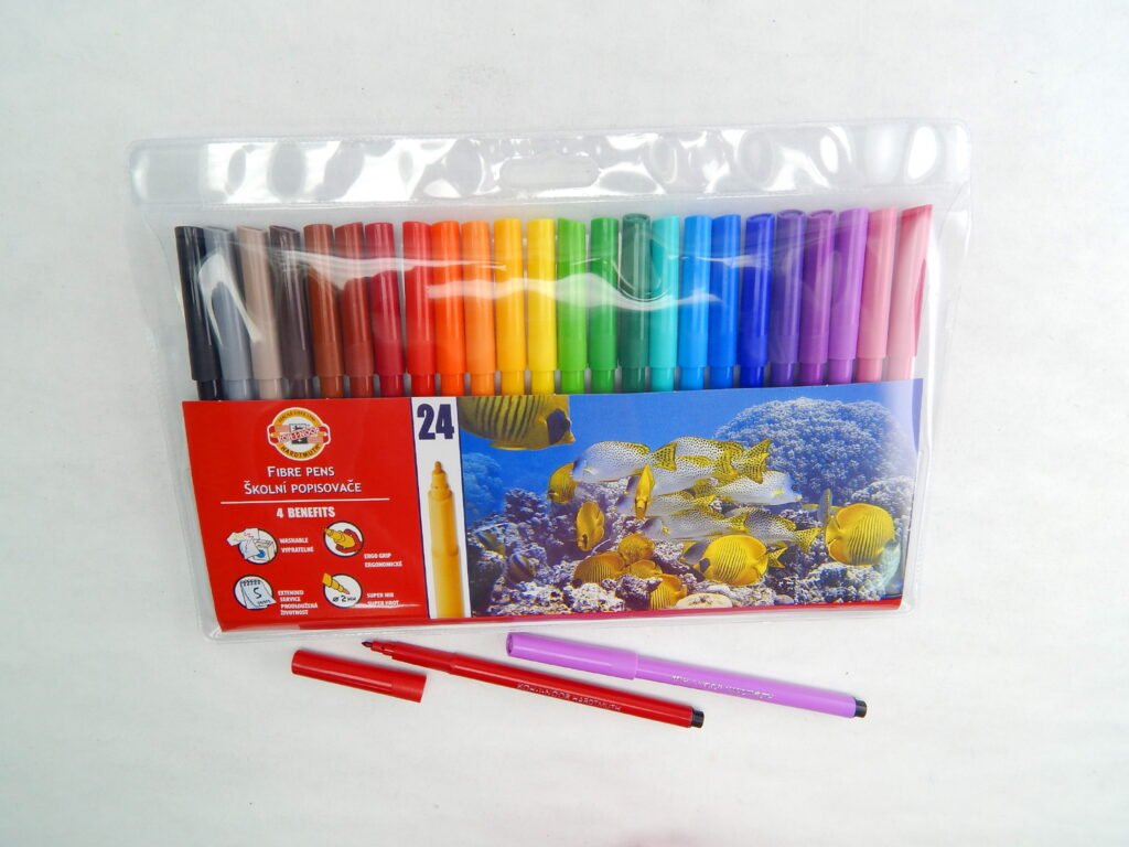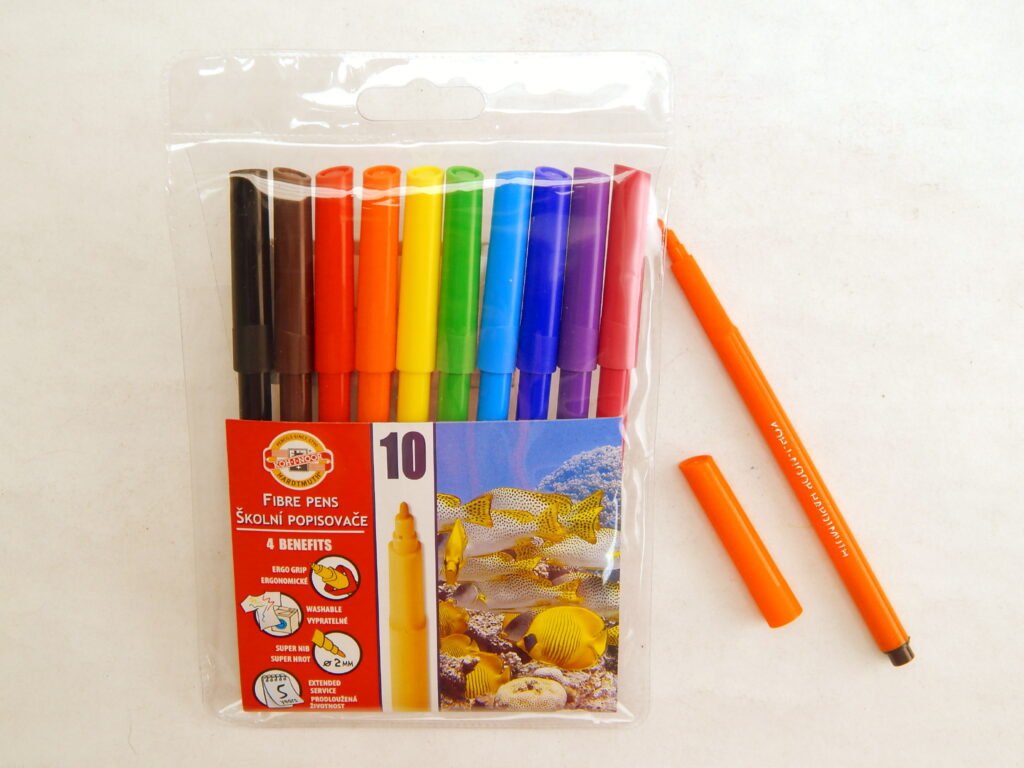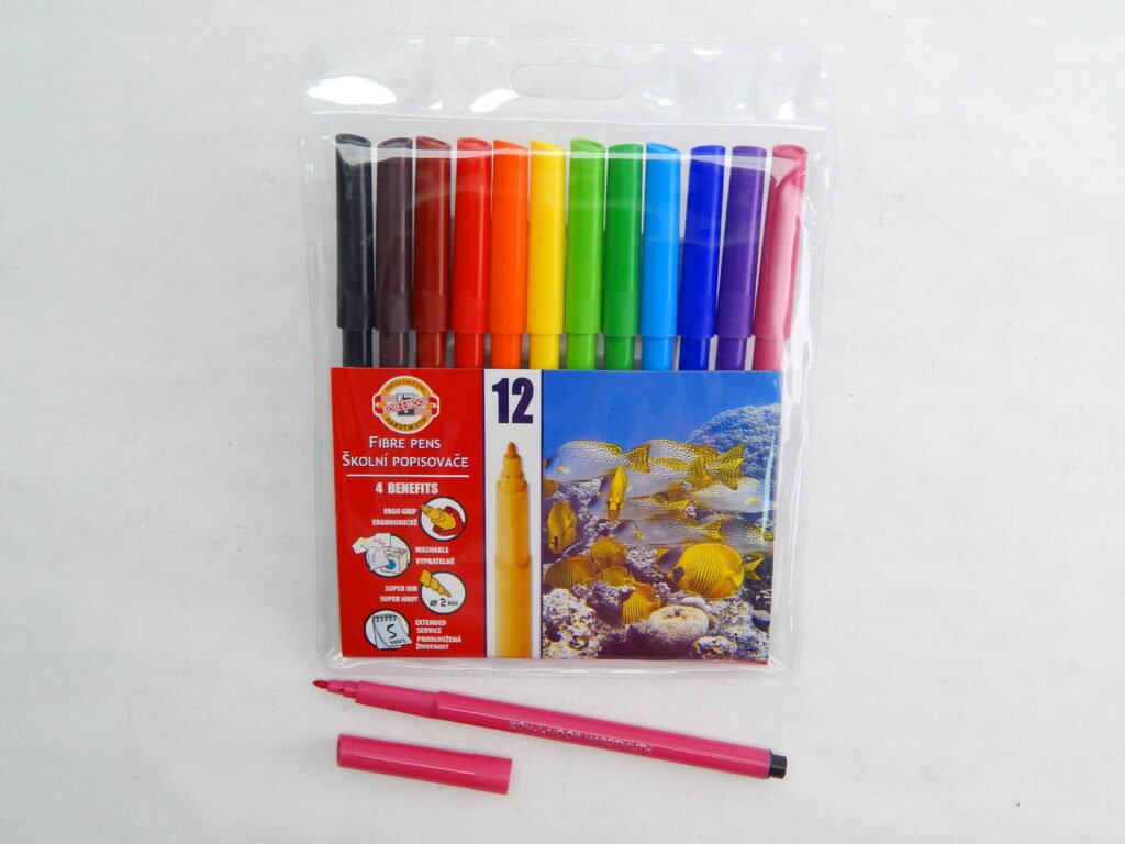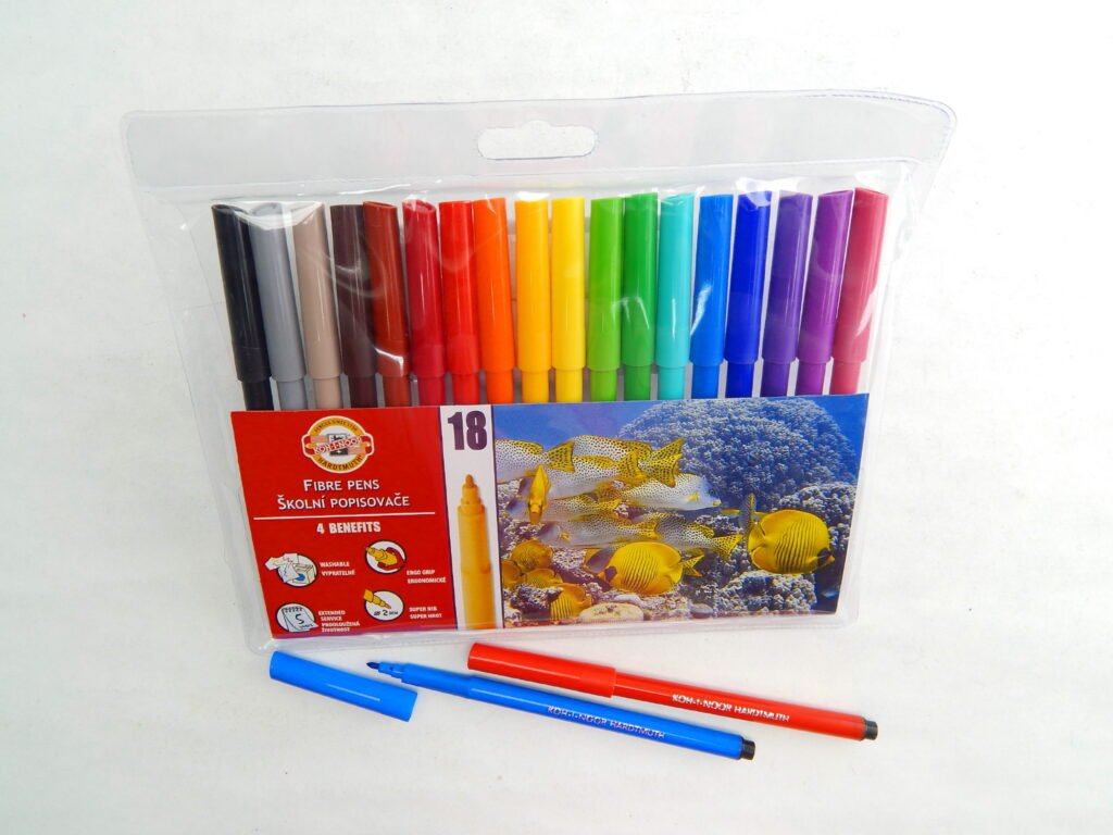 Školní popisovače s trojhranným ergonomickým úchopem a bezpečnostním chránítkem,které umožňuje dýchání i v případě spolknutí. Jsou plněné pestrými vypratelnými inkousty a vyrobeny z materiálů zajišťující odolnost proti vyschnutí minimálně 5 let. Hroty odolné proti zatlačení umožňují psát a malovat stopou šířky 1 – 2 mm, délka 600 m.Všechny použité materiály splňují požadavky normy EN – 71.Baleny jsou do souprav 4,6,10,12,18,20,24,30 ks v PP pouzdrech nebo papírových krabičkách. Vyrobeno v EU.