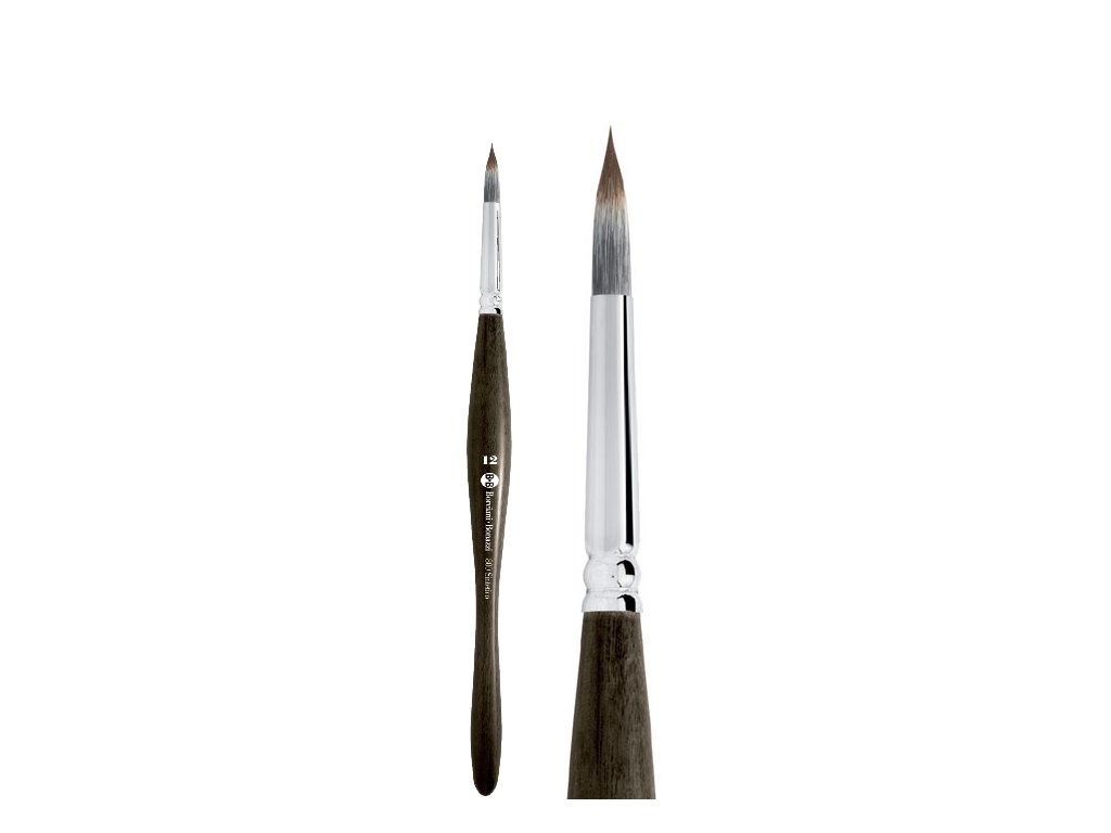 Vysoce kvalitní kulatý štětec ze syntetického vlasu "mangusta" od proslulé italské značky Borciani & Bonazzi. Rukojeť je z lakovaného dřeva a je speciálně vytvarována pro lepší uchopení štětce při malbě a perfektní vyvážení. Tato série je vhodná především pro akvarelové barvy, temperové barvy, inkousty, olejové pastely a hobby barvy, použití je možné i u akrylových a olejových barev, zejména pro lehké nánosy barvy. Štětec je schopen zadržet velké množství vody, které postupně uvolňuje, štětiny jsou poměrně jemné pro jejich jednoduché tvarování.