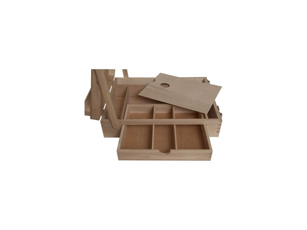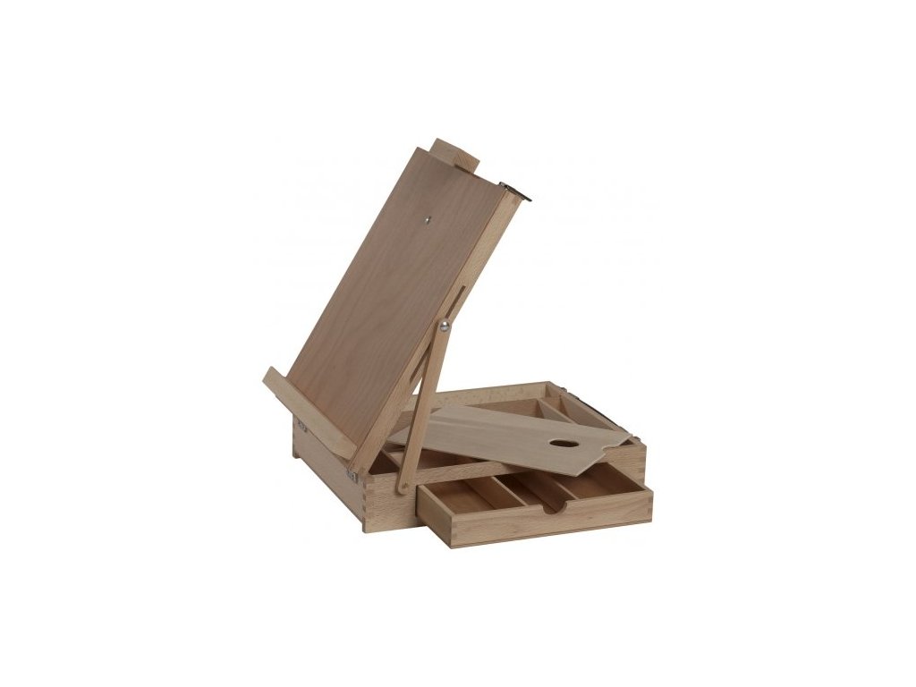 Stojan Renoir je vybaven také praktickým úložným prostorem, který obsahuje vysouvací šuplík. Tento prostor je ideální pro uskladnění malířských potřeb, jako jsou štětce, barvy nebo jiné výtvarné pomůcky, což vám usnadní práci a udržuje váš pracovní prostor v pořádku. Součástí stojanu je také paletka, která je nezbytným nástrojem pro míchání barev.
