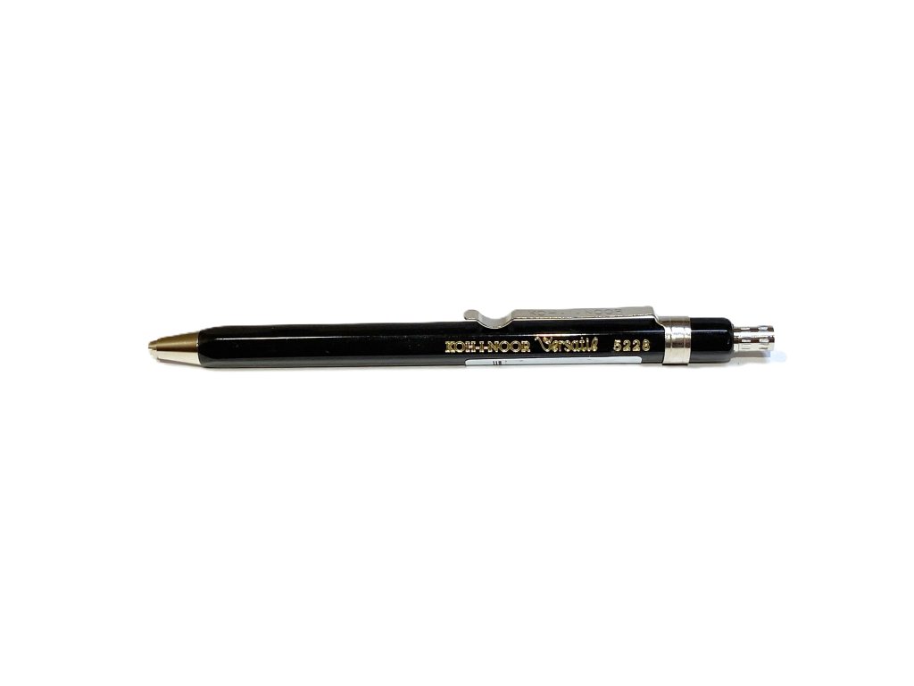 Maechanická padací tužka kovová , krátká, s tuhou pr. 2 mm je určená pro běžné psaní např. do zápisníků, diářů. Stisknutím knoflíku v nakloněné poloze tužky a otevřením kleštiny se tuha posune vlastní vahou do libovolné polohy. V stiskacím knoflíku, který se odšroubuje, je umístěné hrotítko k hrocení tuhy. Profil černě lakovaného pláště šestihranný 0K7, tužka má klip.