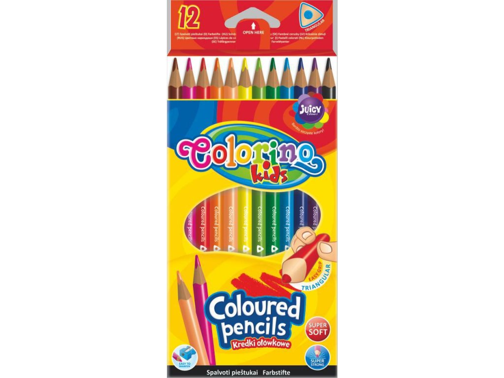 Ergonomický, trojhranný tvar umožňuje pohodlnější úchop a proto jsou pastelky vhodné pro děti. Vysoký obsah pigmentů poskytuje krásné a syté barvy bez nutnosti na pastelku tlačit. Tuha lepená po celé délce je odolná proti polámání. Díky trojhrannému tvaru nehrozí, že se pastelky rozkutálí po stole.