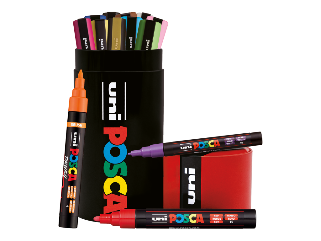 Posca kombinovaná sada popisovačů - plechová dóza, PC-3M, PC-5M, PC-5BR, mix barev
