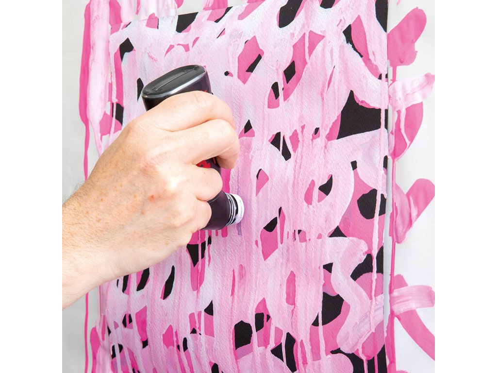 Nový velkoformátový popisovač s kulatým hrotem a dokonalým úchopem pro XXL projekty. Lze ho používat jak na svislých, tak i na vodorovných plochách. Umožňuje rychlou práci, je ideální na vyplnění velkých ploch několika tahy nebo velmi širokou linku. A pokud chcete docílit efektu tekoucí barvy, stačí ho otočit. Je intuitivní a zábavný, dokonalý nástroj, který uspokojí i ty nejdivočejší nápady.